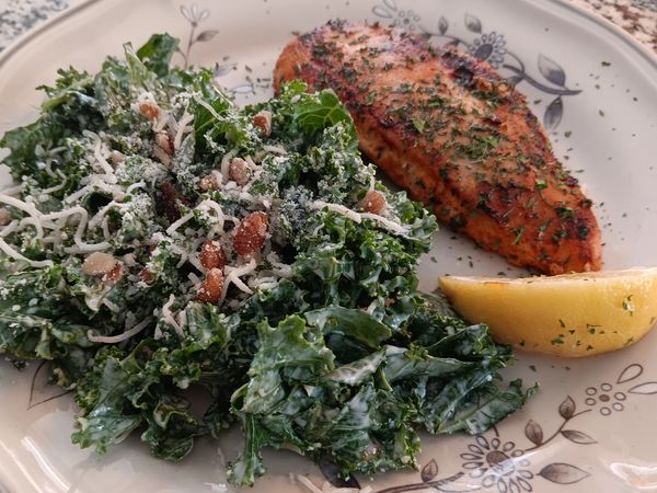 Pictured: Grilled Chicken with Kale Caesar Salad