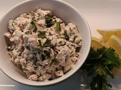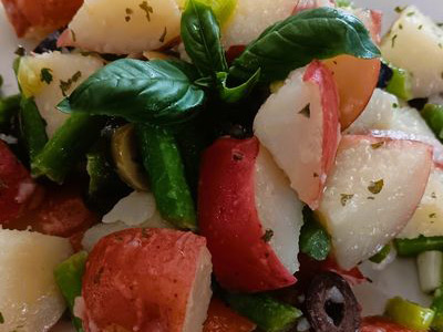 Salad served with a Lemon Basil Vinaigrette, I love the salad served warm. Great the next day too!